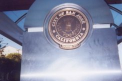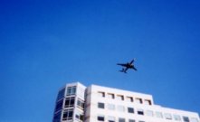 | サンフランシスコ空港に到着。サンノゼまでバスで45分です。 | サンノゼの街は、空港からとても近く、離発着する飛行機が後を絶たない。「まっ青な空と飛行機」これが僕のサンノゼのイメージです それで思わずこの写真を撮りました。 |