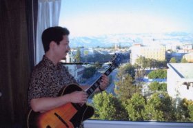 | サンノゼ・ヒルトンの僕の部屋からの景色(1) いわゆる「シリコン・バレー」です。本番に向け練習中です。 |