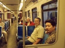| ホテルから歩いても10分足らずの会場へのアクセスは「お年寄り」が中心なので、もっぱら「Light Train」と呼ばれるこの路面電車を利用しました。1$25¢です。 | 「追っかけ隊」のおじ様達 ブルース・フォーNの中のさんの姿も見えます。 |
