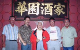 | 北村さんと海外に行くと必ず中華料理を食べに行きます。それが、アメリカでも、オーストラリアでもどこでも・・・です。 「追っかけ隊」オジ様達と |